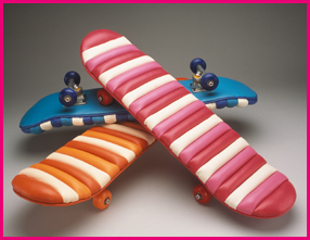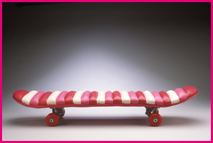 Recess: Inside SkateTuck n' Roll Upholstered vinyl Skateboards for a soft cushioned skate down your sweeping hall. It's sculpture you can ride. Designed for the indoor daredevil and fun. |