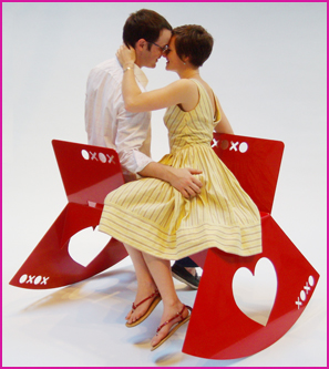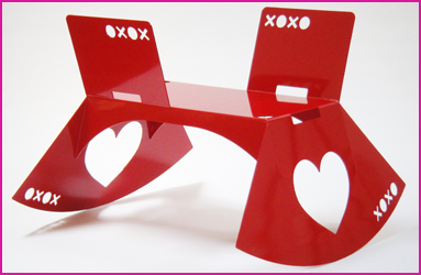 Modeled after the Victorian courting chair, this piece allows two people to sit face to face comfortably. Promotes conversation, meaningful gazing, and relaxing cheek-to-cheek.